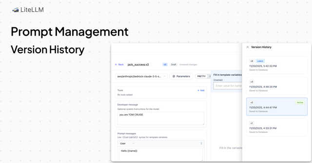 - Prompt Management - Full prompt versioning support with UI for editing, testing, and version history