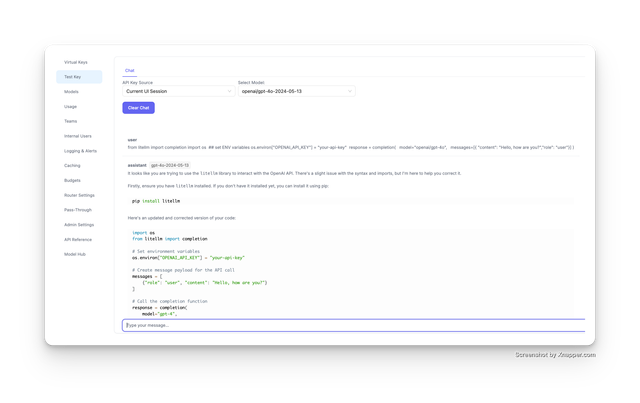 - Create & Test Prompts: Build prompts with developer messages (system instructions) and test them in real-time with an interactive chat interface